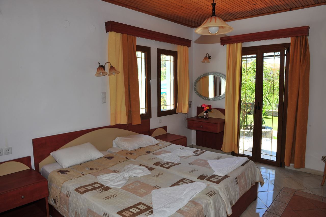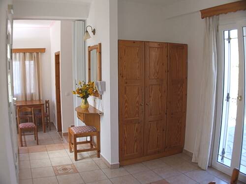 ELEFTHERIA'S Apartments is a friendly family Business with beautiful, brand new (refurbished 2011), comfortable, modern and bright clean one bedroom apartments. The apartments are spacious (50 m²) and can accommodate two and three people or families with two children. Consisted of a main bedroom (separated from the other rooms by a door), a living room (for the third or fourth guest) and a bathroom - WC. All apartments are well equipped with kitchenette, refrigerator and everything that is necessary, in order to provide all the beauty and comfort that are needed to guarantee the pleasant stay of the guests.In front of the apartments lie 3000 m² of beautiful, elegantly designed and well-kept gardens. The stone houses are perfectly aligned with the ultimate green landscape.